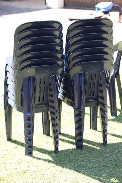 THESE 15 CHAIRS ARE IN EXCELLENT CONDITION AND PERFECT IF YOU ENTERTAIN A LOT; HAVE STUDENTS; FOR UNDER THE LAPA; IN A WORK ROOM OR EVEN IF YOU WANT TO HIRE THEM OUT.... ANYWHERE THAT YOU MAY REQUIRE EXTRA CHAIRS!!! THE CHAIRS ARE ALL NICE AND STURDY AND STACK AWAY FOR EASY STORAGE. PLEASE VIEW THE PICS VERY CAREFULLY FOR MORE DETAIL AND THE GENERAL CONDITION AS THIS FORMS PART OF THE DESCRIPTION. POSTAGE IS NOT POSSIBLE SO PLEASE ARRANGE TO COLLECT IN EDENVALE. YOU ARE BIDDING PER CHAIR TO TAKE ALL OF THEM!!!