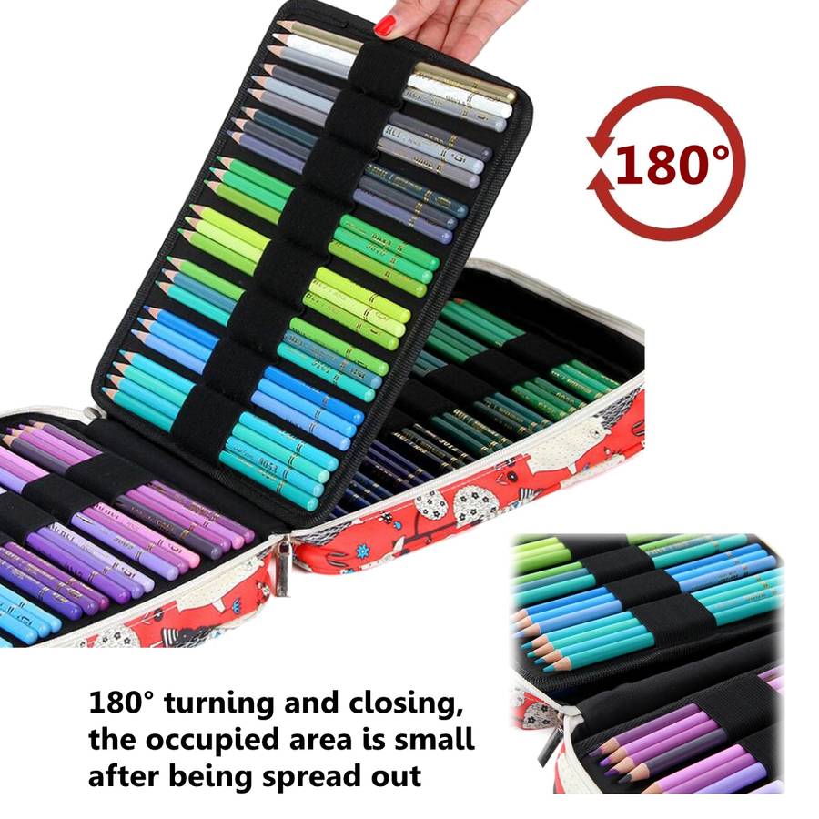 Features: ? a?? Adjustable 100 120 132 144 150 pieces colored pencils or makers on this pencil organizer. a?? 180ᄀ ̄ turning and closing, the occupied area is small after being spread out. a?? With two sides of elastic holders, roomy for all your drawing tool. a?? Fits for watercolor pencils perfectly, could also apply to ordinary pencils.? a?? Handy Design, easy and convenient to carry anywhere. a?? Safe and environmentally, friendly non-toxic. ? Specification: ? a???Material: oxford cloth a???Color: as shown in pictures a???Size: about? 265 x 210 x 55mm a???Capacity:? 150 slots ? Fitment: ? a???Ideal case for art, office, makeup supplies. It can hold various colored pencil, watercolor pencil, gel pen. a???marker, eraser or cosmetic brush in pencil case. Extensive Applicability. ? Package Includes: ? 1 x Pencil Storage Bag (Not including other things in the pictures) ?
