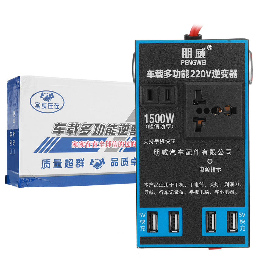 1500W Solar Power Inverter 12/24V DC to 220V AC Converter 4X USB Car Inverter 1500W Solar Power Inverter 12/24V DC to 220V AC Converter 4X USB Car Inverter