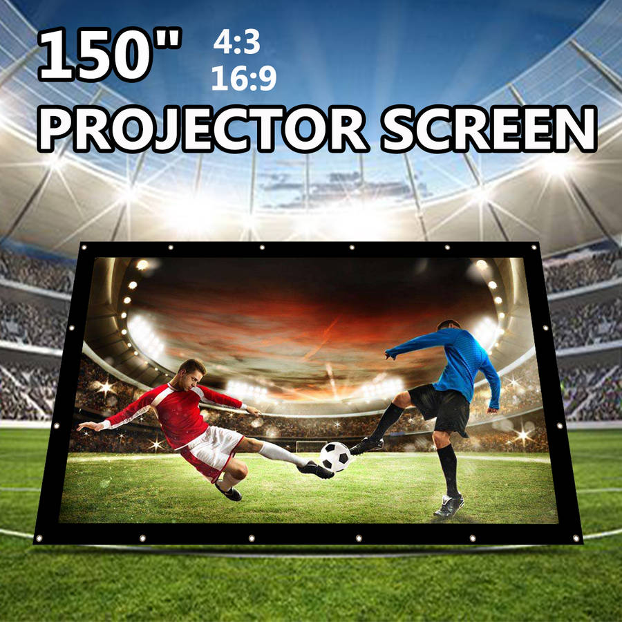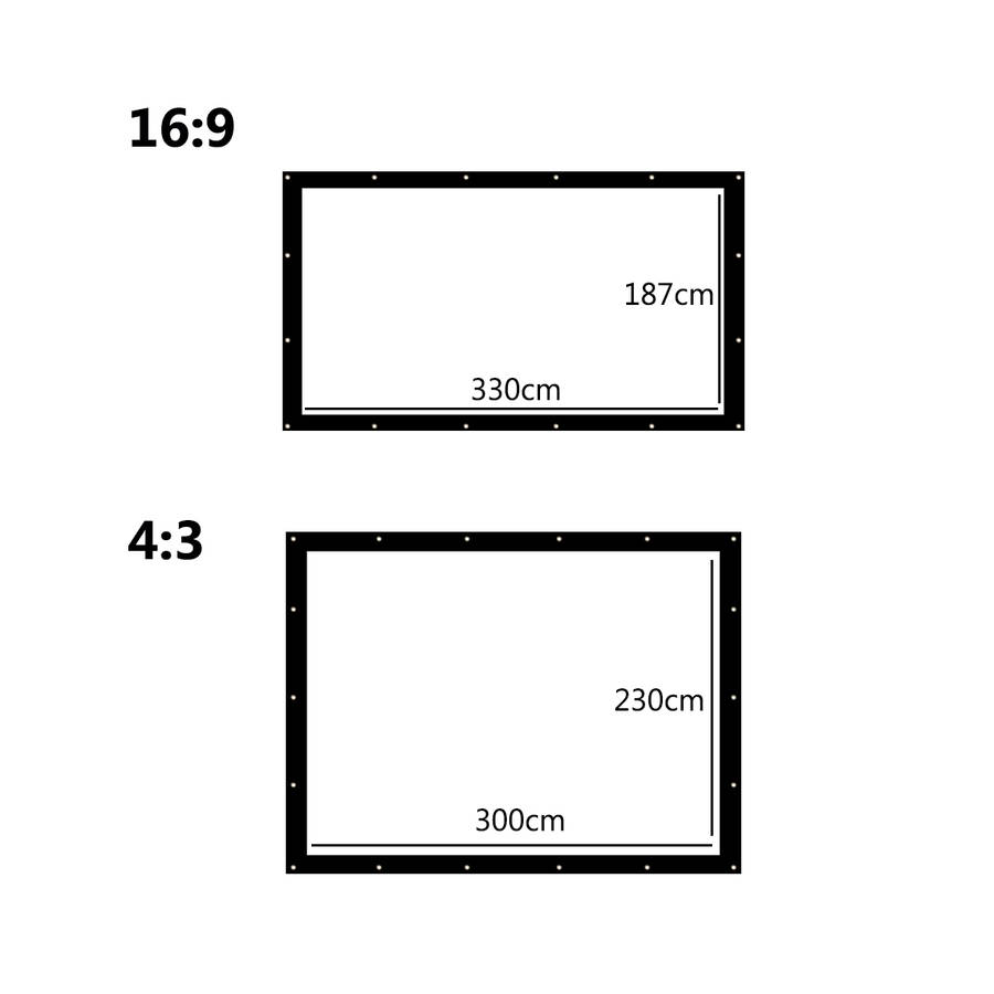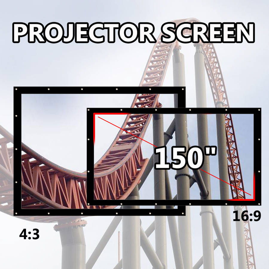 Features: Aspect ratio: 16:9, 4:3 Note: Please kindly leave us a PAYPAL NOTE specifying your favorite ratio, otherwise we will send it in Random. Color: White + Black Material: Polyester Screen size: 150 Inch Visual dimension: Approx. 330 x 187m / 129.92 x 73.62 Inch (16:9) Approx. 300 x 230m/ 118.11x91.55 Inch (4:3) Folding packaging small size, no crease, the use of good effect. 16-18 holes around, use hooks(no included), easy to install. To stick it on a flat surface, or hung by a rope as well as pinning it to the wall. Ideal for watching football match meeting, classroom training, public display, home cinema, party, K10TV, playing game, backyard movie etc. Package Included: