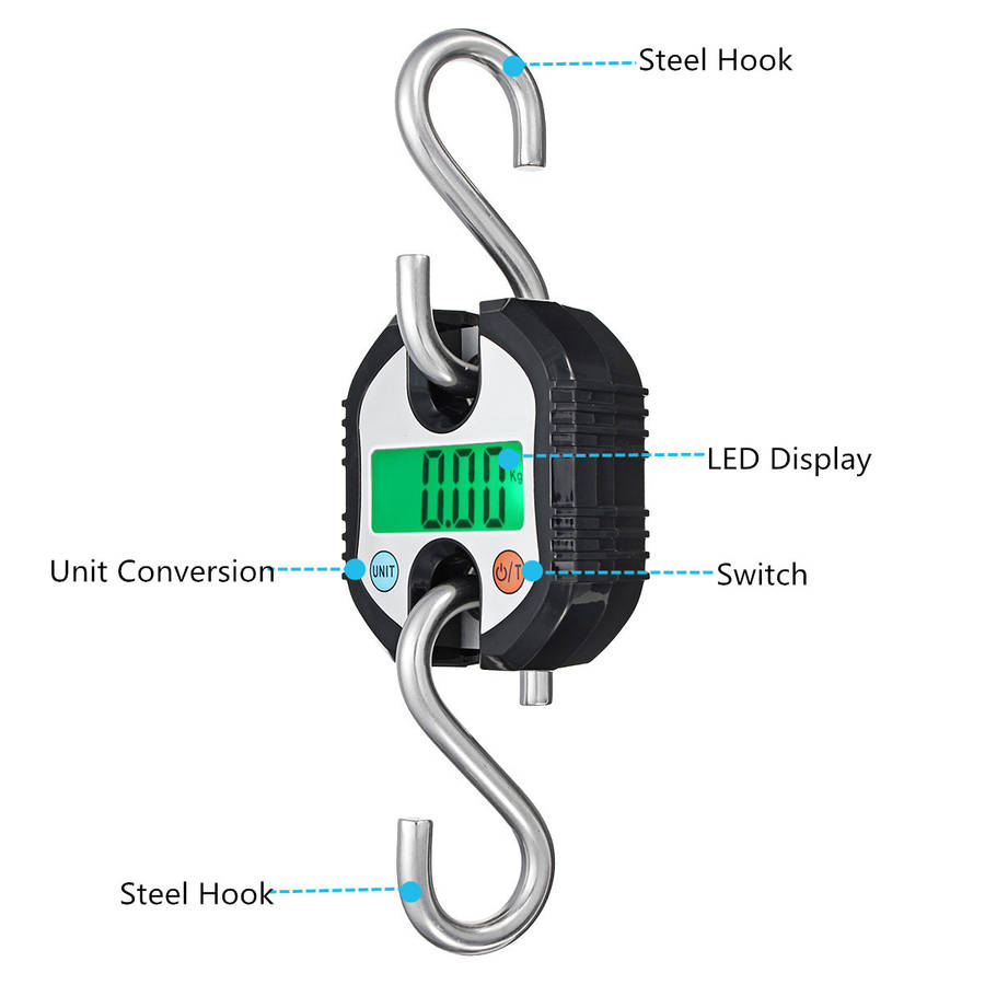 1.Put on the battery,install the two âSâhooks to the scale and hang it well.With scale off,press the switch key,the screen will show"8888",when stable,the screen show"0.00",then the scale is at the weighing status.