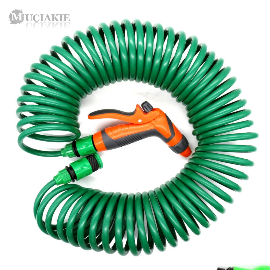 Garden Flexible Coiled Spiral Car Washing Cleaning Water Hose w/ Spray Nozzle