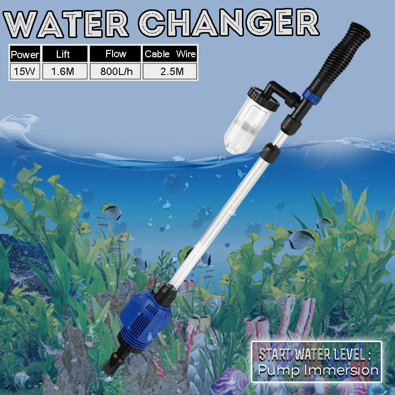 Note: Suitable for both fresh water and sea water. Please clean the device completely after each use witha sea-water. This device canat dive, please keep the water level blelow the warning water level. Package Included: 1x Elecric water exchanger