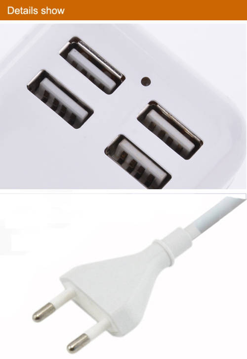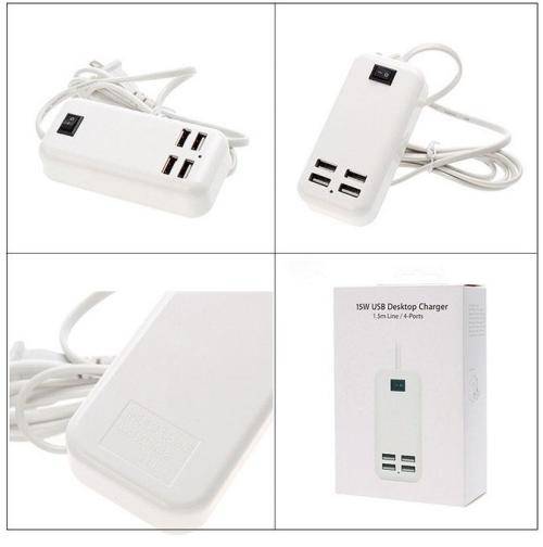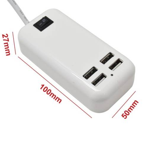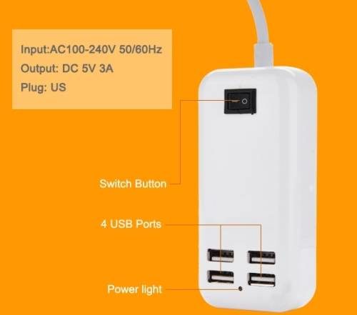THE 4 PORT USB DESKTOP CHARGER IS LIGHT AND PORTABLE, PLUGS INTO THE WALL FOR POWER. THE CHARGER HAS 4 USB PORTS THAT YOU CAN USE FOR 4 MORE DEVICES THROUGH ONE SOURCE. WITH ON/OFF SWITCH, ENERGY SAVING-TO BE TURNED OFF WHEN NOT BEING USED, HIGH EFFICIENCY AND LOW ENERGY CONSUMPTION. IDEAL FOR HOME. OFFICE AND OTHER INDOOR USAGE. EASY TO OPERATE AND LIGHTWEIGHT.