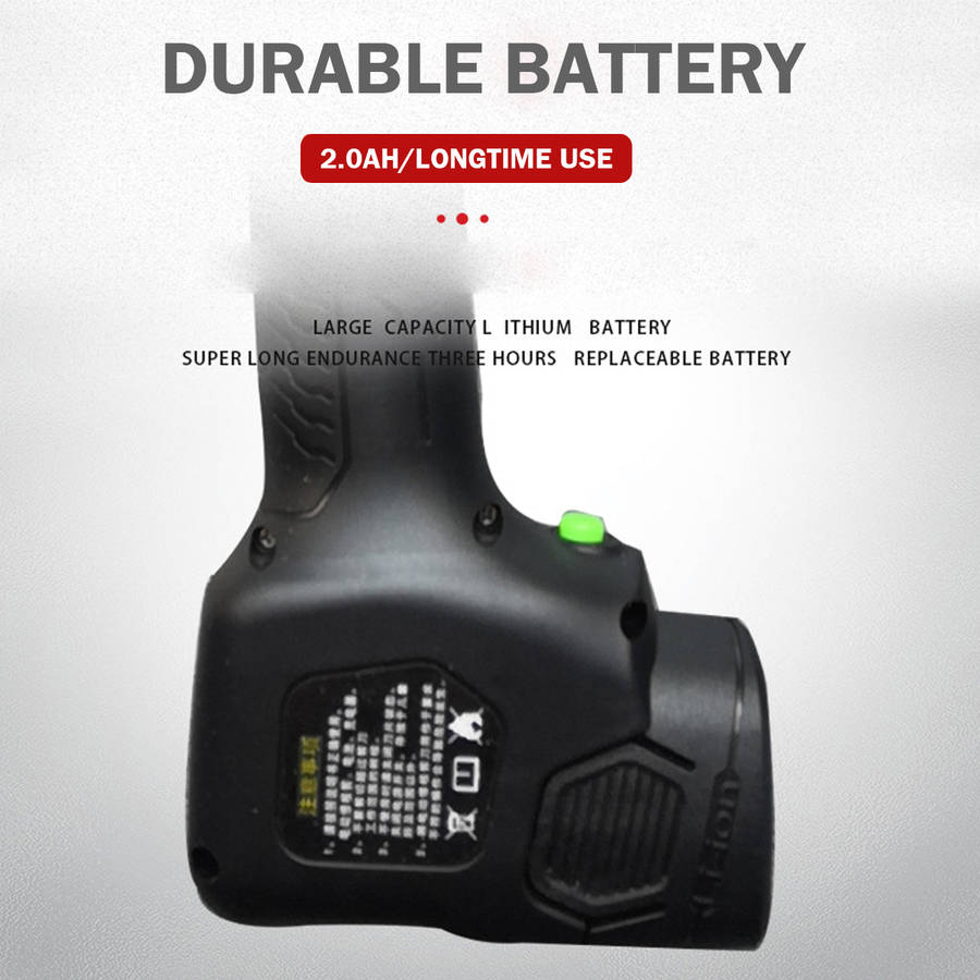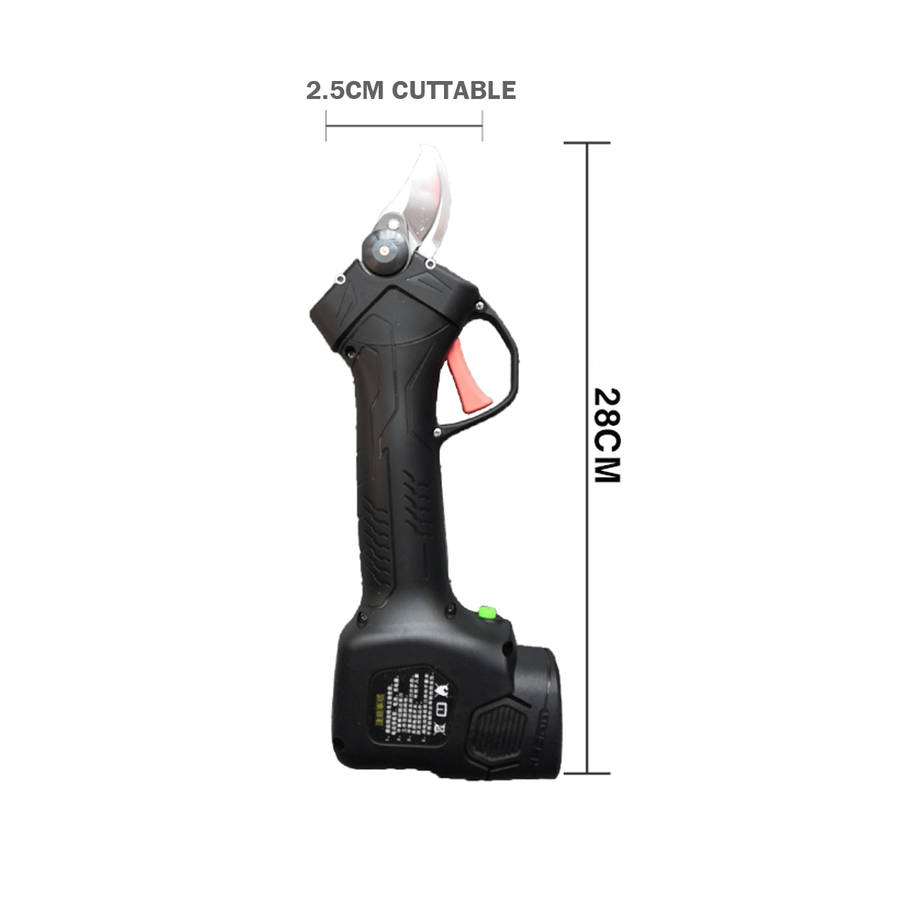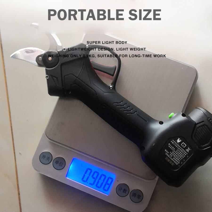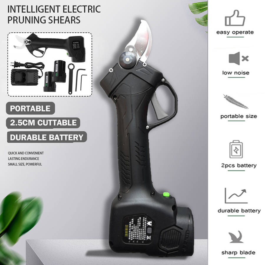 Features: -Low noise,good fatigue resistance. -Sharpeness blade,made of tungsten steel,durable -High quality lithium battery with high power and high storage efficiency -PVC wrench with comfortable handle and no finger damage when used -The protection function of both sides of motor is controlled by Hall chip switch -Flexible in use,easy to turn,safe and reliable,easy to maintain,convenient to replace and operate -The working performance is stable,the pruning quality can meet the requirements of horticulture,and there is basically no leakage shear. Package included: -1 X Branch Cutter -2 X Battery -1 X Battery Charger -1 X Instruction Manual -2 X Screwdriver -1 X Wrench More details: