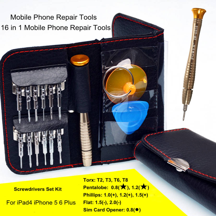 16 in 1 Portable Mobile Phone Repair Screwdriver Set for iPad4 iPhone 5 6 PlusFeatures: