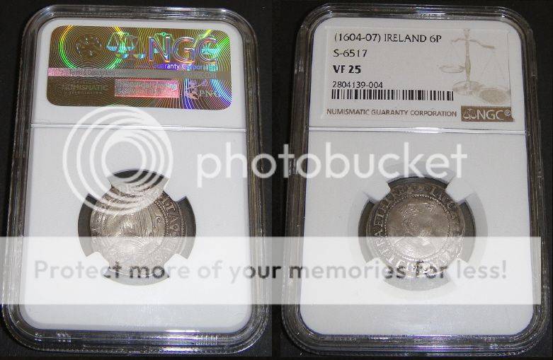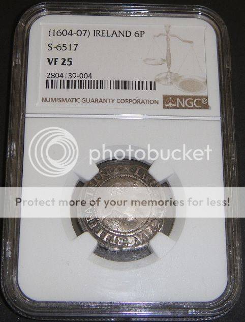 1604-07 (Ireland) King James I Sixpence (6d): NGC graded VF 25