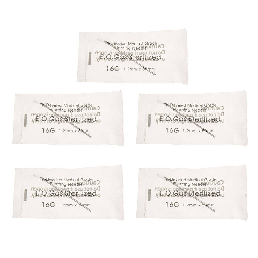 5pcs x Piercing Needles 16ga(100% Sterilized using ethylene oxide (EO) gas.)