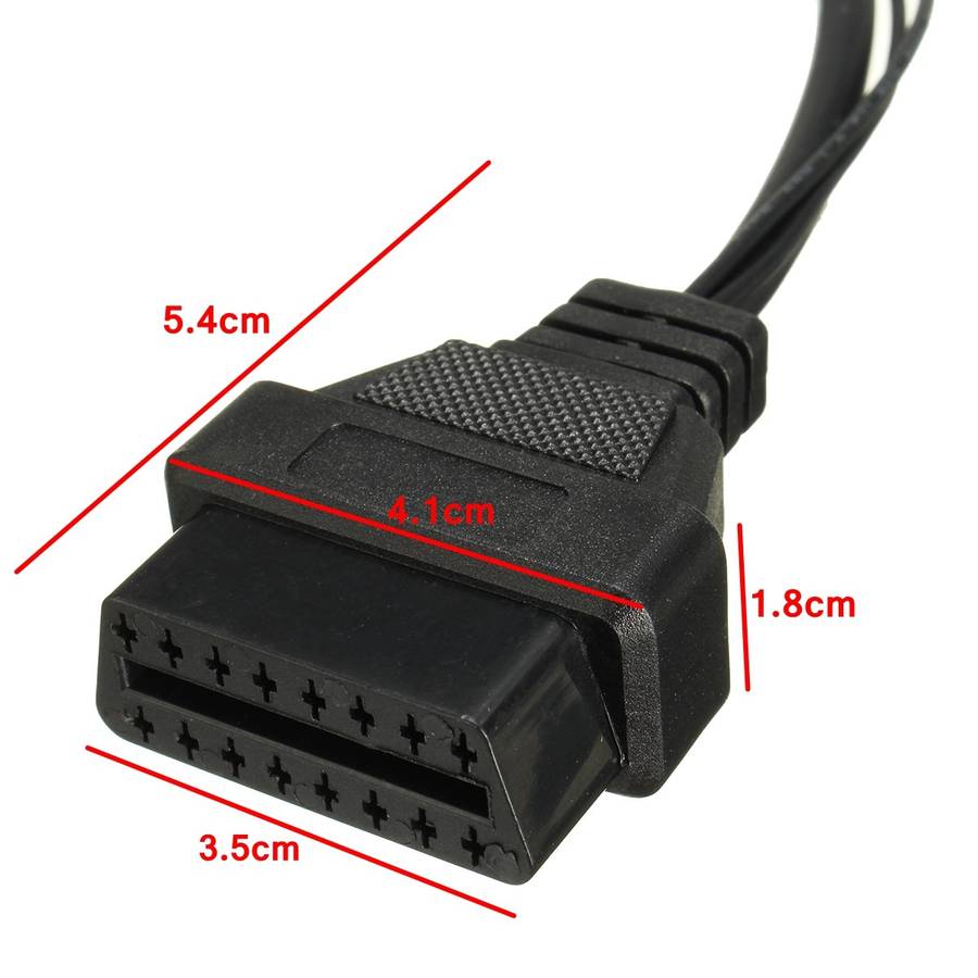 Package weight: 0.07 kg Specification: Compatibility: OBD2 Material: Plastic Overall Size: approx.42cm Size: As the pictures shown Color: Black Quantity: Pack of 1 Feature: This is only an adaptor and must be used in conjunction with hardware compatible with the vehicle Converts standard OBD2 3 pin lead to the 16 pin plug for older Fiat, Alfa Romeo or Lancia (normally before 2001, check your vehicle to ensure) Fitment: Fits for Fiat Alfa Romeo Notes: Please check the size measurement chart carefully before making a payment. Please allow 0.1-0.5cm difference due to manual measurement. Instruction is not included. Package Include: 1 x Cable Adapter