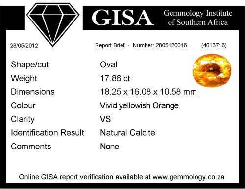 G.I.S.A. CERTIFIED 17.86CT NATURAL CALCITE
