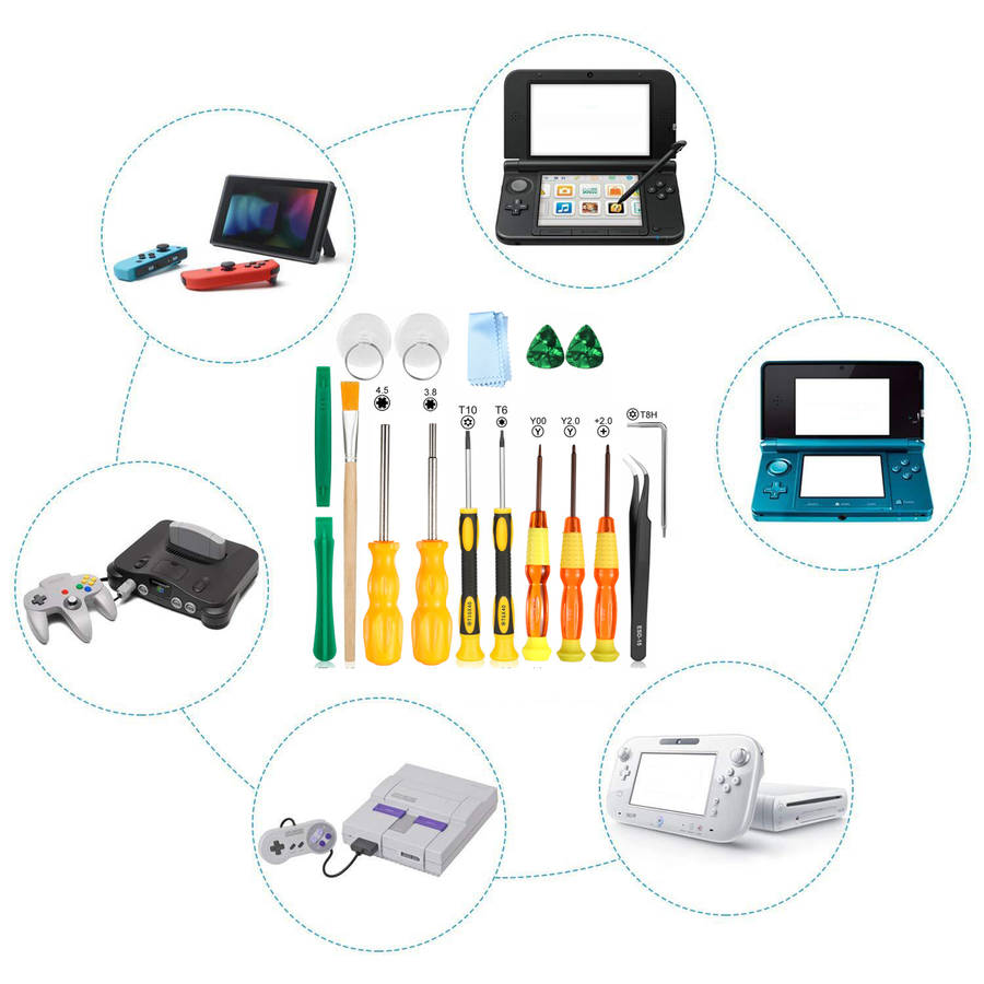 Features: a?? - Full professional repair tools with excellent wear resistance, practical and useful. - Different models screwdrivers with anti-slid handle, which save your strength and time. - Easy to clean and remove, convenient to carry for improving your work efficiency. - Complete inclusive premium repair tool kits to repair for your Switch, for New 3DS, for New 2DS, for SNES ClassiIc (2017), for Wii /DS /DS Lite /GBA and more. - Repair Kit only, other accessories demo in the picture are not included!a?? a?? Specification: a?? Type: Accessories Color: As Picture Shows Quantity: 17pcs/Set Type:Type A, Type B, Type C a?? Package included: a?? 1 x 17 in 1 Triwing Screwdriver Game Bit Repair Tool Kit?