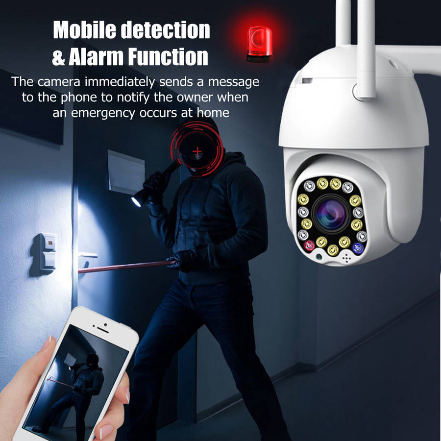 Feature: - Outdoor 1080P network camera. - Red light and blue light warning. -IP66 is waterproof and has good sealing. - Two-way voice communication. -5.0MP HD video recording. -17 high power lights: 9 white lights, 6 infrared lights, 1 red and 1 blue warning light. - Infrared night vision, full color night vision, smart night vision, three monitoring modes. - Intelligent motion d etection combined with Motion D etection technology to trigger an alarm. - High-efficiency infrared array with low power consumption and illumination distances up to 100 meters. - High resolution, which can be switched at any time according to different environments and different needs. - Use your mobile app to remotely monitor your home from your phone anytime, anywhere. - With Motion D etection alarm function, an alarm is triggered when you send a message to your mobile phone when an abnormality is triggered at home. - The camera has a hotspot WIFI and usually does not monitor network connection hotspots. Specifications: Color: White LED: 17 Zoom: 8x Zoom Effective pixels: 5 million Resolution: 1920 x 1080P Pan/tilt rotation: 355° horizontal, 90° vertical Audio input: built-in microphone Audio output: built-in speaker Alarm trigger: Motion D etection Image sensor: 1/3 inch CMOS sensor Video compression: H.264 / MPEG4 Package Included: 1 x Camera 1 x Bracket 1 x Screw package 1 x Installation tool 1 x English manual (excluding memory card) Detail Pictures: ![]() ![]() ![]() ![]() ![]() ![]() ![]() ![]() ![]() ![]() |