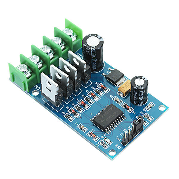 Product parameters: 1. Using full-bridge driver chip + low-pass internal resistance 55V110A NMOS, can achieve positive and negative motor 2. Two PWM input, duty cycle can be adjusted within 0-100%, with instant braking capability 3. Working voltage 10V-40V, power 170W the following 4. Control is extremely simple and convenient, only three input lines to control the motor 5. Chip built-in dead zone hardware control, better able to adapt to frequent commutation to reduce the tube's own loss 6. The back of the module is tin-plated, allowing the wires to flow through larger currents 7. Support 5V, 3.3V logic input. Suitable for all types of single-chip IO port direct control, you can also control the motor input through the analog input 8. Board size: 38.8 * 67.5mm