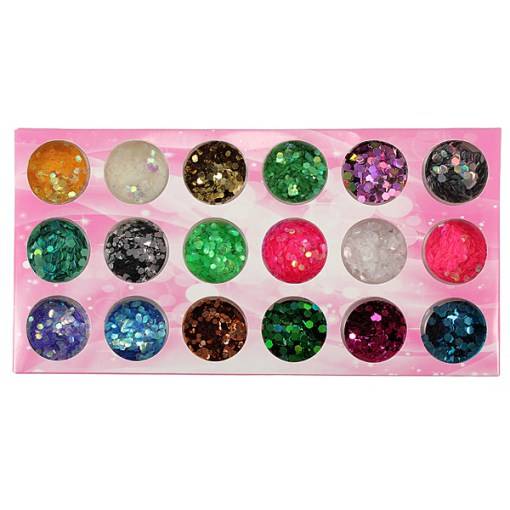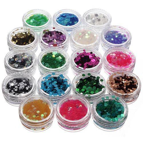 18 different colors shiny hexagon sequins.