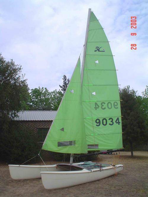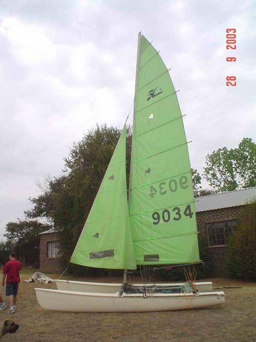 18 foot long Hobie Catamaran sail boat.