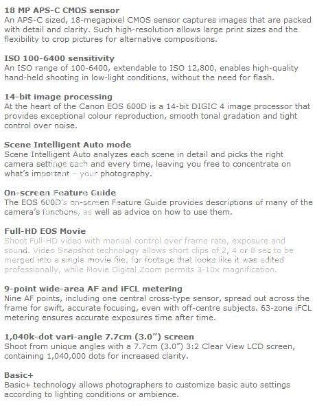 18 Megapixels - Canon EOS 600D Digital SLR CAMERA BODY ONLY - PROFESSIONAL