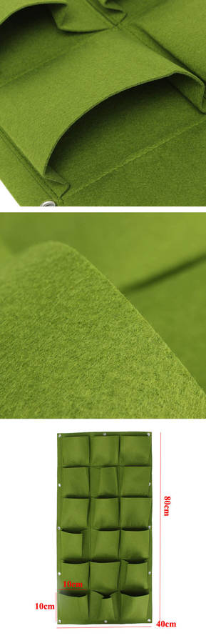 Feature: Easy to hang from any location Strong and friendly quality felt material Excess water will automatically drain through felt material Soft felt, lightweight design for easy movement and hanging Hangs on hooks at either top corner, or a timber rod, like a picture Hang it at "easy reach" height for adults or childern Four pockets to grow a variety of plants Soft-sided, breathable and modular No complex hydroponics or container-stacking