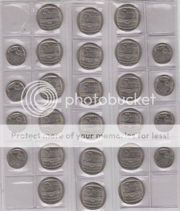 18 x 1994 Nelson Mandela Inauguration R5 coins & 8 x 2002 Johannesburg World Summit R1 coins