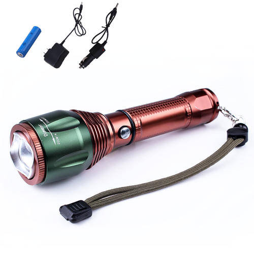 1800 Lumens LED Rechargeable Zoomable Flashlight Torch With Car Charger