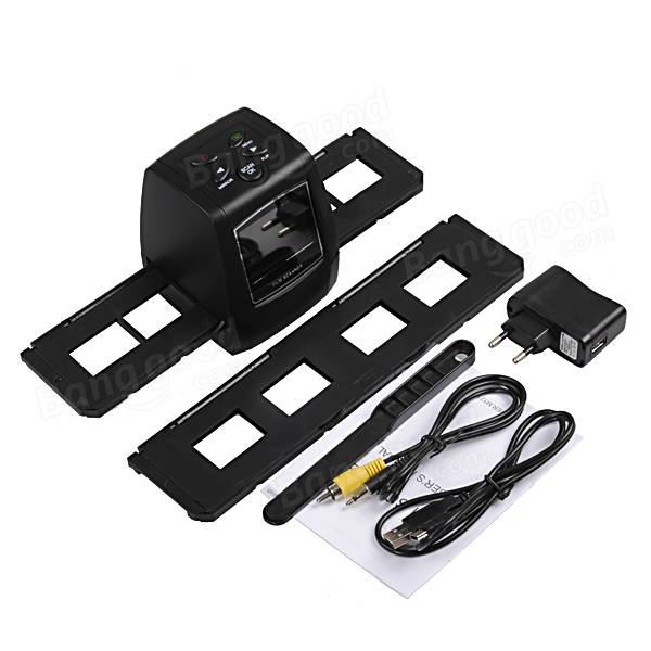 1 x Film Slide Negative Photo Scanner 1 x Positive slide holder 1 x Negative film holder 1 x TV cable 1 x AC adapter (Comes with a mini plug adapter according to your country) 1 x USB cable 1 x Brush 1 x User's Manual