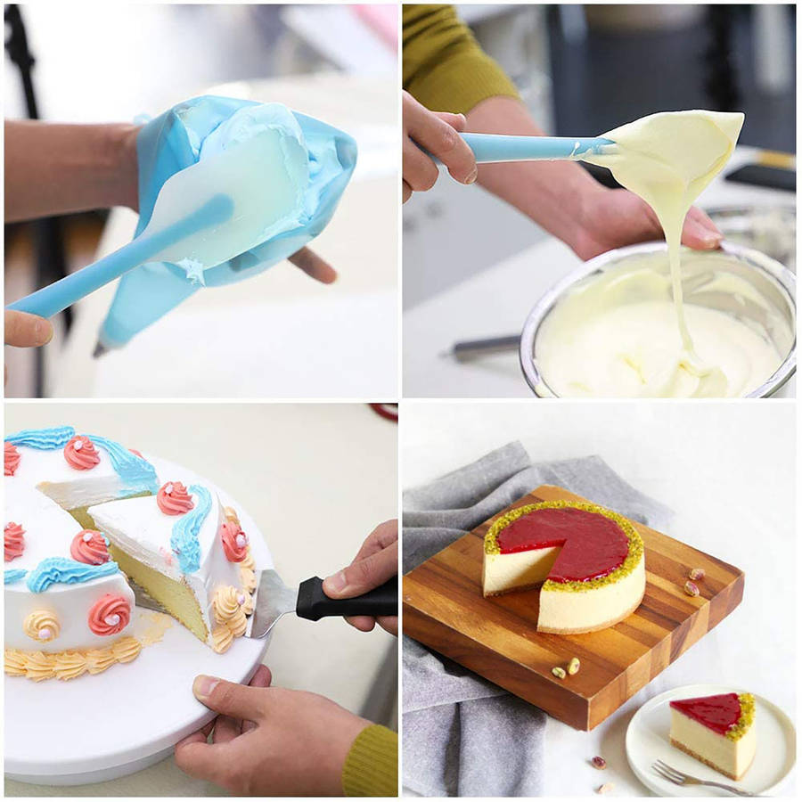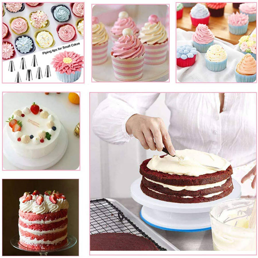 | Package Contents | 1x Cake Turntable Stand (11.7in) 1x EVA Pastry Bag (12in) 100 x Disposable Frosting Bags 24 x Flower Nozzles (small) 8 x Korean Style Nozzles 6 x Chinese Style Nozzles 3 x Ball Shaped Nozzles 2 x Spatulas (straight & angled) 1 x Cake Leveler 1 x Cake Smoother 1 x Flower Scissor 2 x Flower Nails 8 x Carved Pen 1 x Cleaning Brush 1 x Cake Writing Pen 3 x Flower Tips 2 x Blue Piping Couplers 2 x Medium Piping Couplers 2 x Small Piping Couplers 3 x Cake Comb Scrapers 9 x Silicone Cups 1 x Instruction |