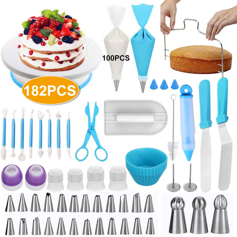 Specification | Name: 182PCS Cake Decorating Supplies Kit Color: As shown Material:Plastic, Stainless steel |