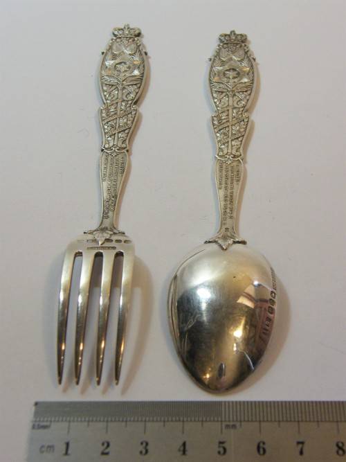 1837-1897 Queen Victoria 50 year reign hallmarked silver fork & spoon set in original case