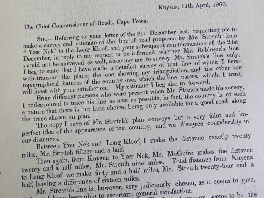 1860 Cape of Good Hope report by Mr. Thomas Bain on the line of road from Yzer Nek to the Langekloof