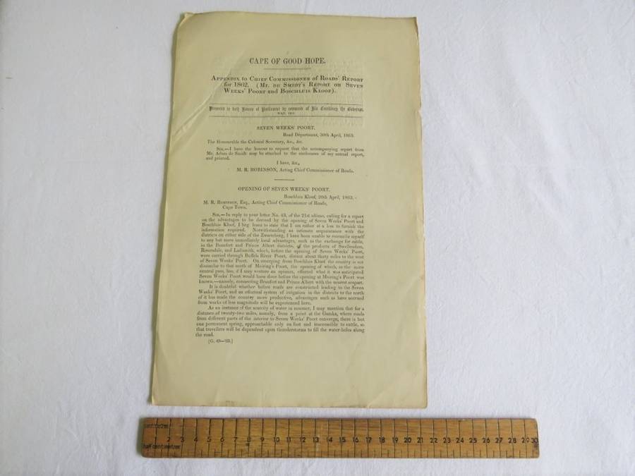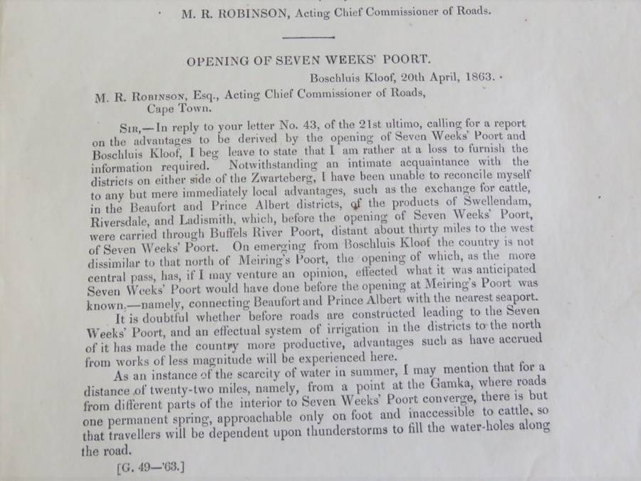 1863 Cape of Good Hope appendix o report on seven weeks-Poort and Boschluis kloof
