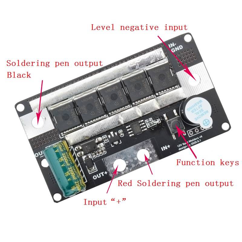The circuit board of this spot welding machine can be used for welding 18650/26650/32650 lithium batteries. Advantages: portable, stable, reliable, and durable. Low cost, you have a car starter battery, or a high-power battery pack, just connect it and use it!