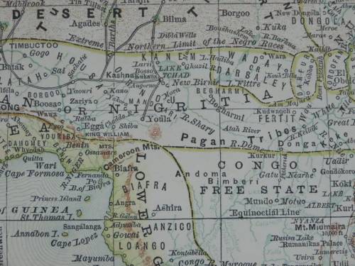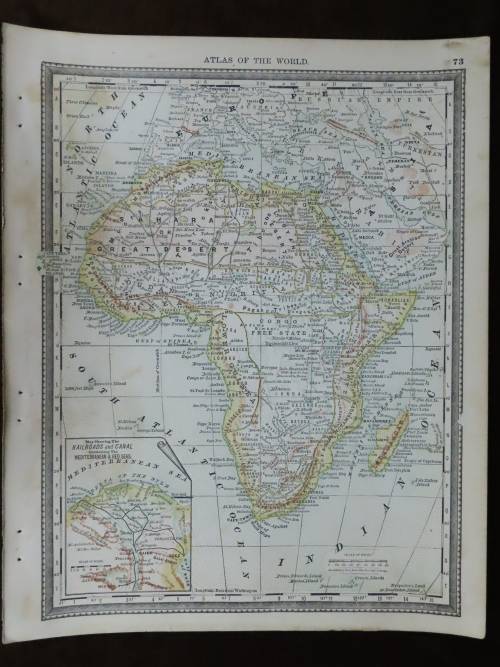The paper is fairly thick and remains stiff and responsive to handling. There is some discolouration, and very slight foxing is starting to take hold. Original Binding marks to the left border. Published in Rand McNally's Atlas of the World for 1880.