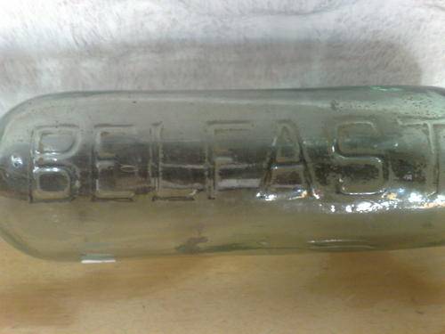 For Sale is a SATIN GLASS ROSS'S SODA BOTTLE circa 1880's-1890's, with round bottom and is 9 1/2"/ 14 CM long . The bottle is embossed with "ROSS'S" on one side and "BELFAST" on the opposite side. It is a very heavy thick bottle with a greenish hue. It is in very good condition for it's age. I have seen a couple of these and they weren't in as good a shape as this one. NO DAMAGE WHATSOEVER TO REPORT!!. Nice addition to your collection. Historical facts: This class of soda bottle is unusual in that they were intended to NOT stand upright. The round bottom were designed to ensure that the bottle was laid on its side so that the wired down cork would not dry out and shrink allowing the contents to loose carbonation or evaporate.