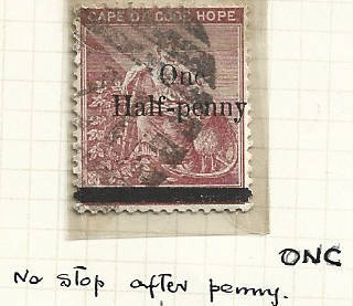 1882 COGH 1/2d on 3 Penny Deep claret WMK CR/CA used single O/P shifted t0 the right CC41b