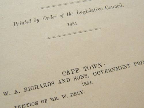 1884 Cape of Good Hope report on the Select Committee on the petition of Mr W Dely