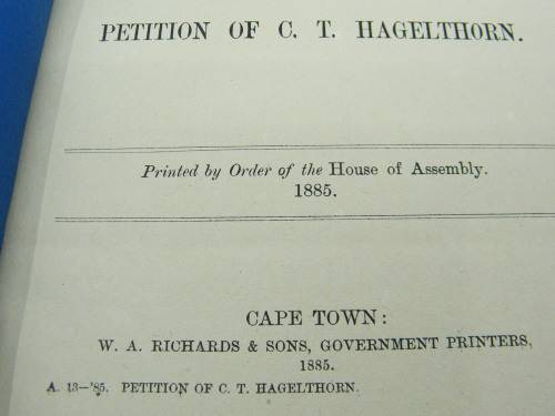 1885 Cape of Good Hope Report of the select committee on the petition of CT Hagelthorn