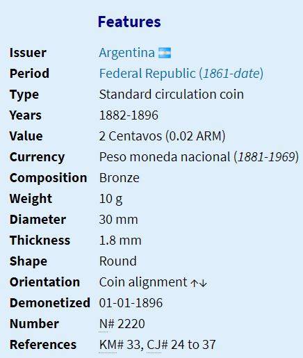 1891 | 2 Centavos | Argentina | 130 Year Old Coin | 30 mm