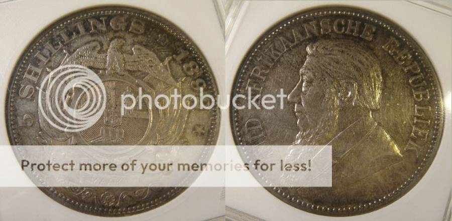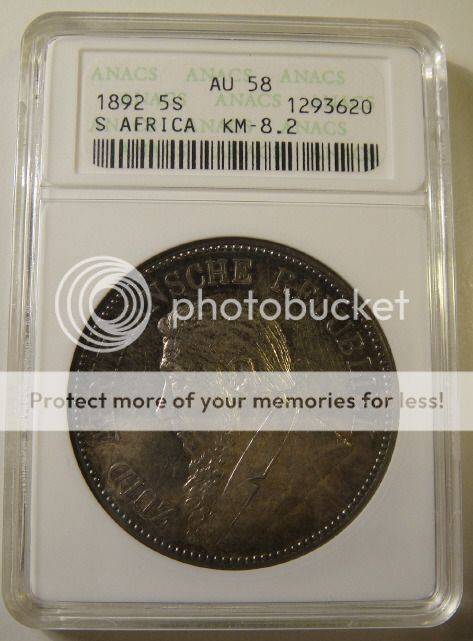 1892 Crown (5/-) Five Shilling (Double Shaft) : Paul Kruger ZAR : ANACS Graded AU58