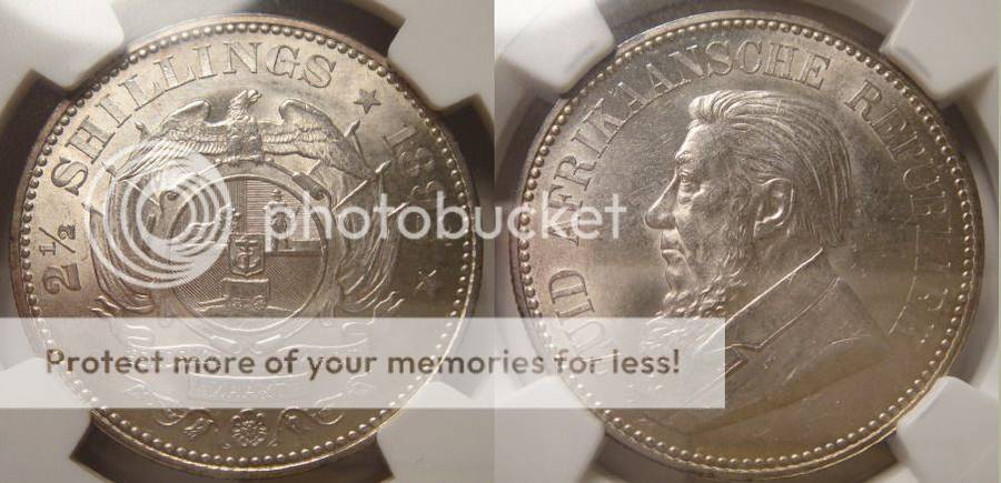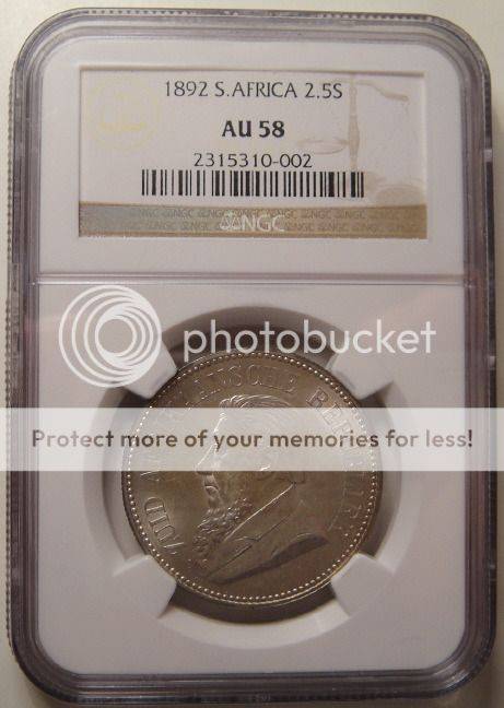1892 Half Crown (2/6-) : Paul Kruger ZAR : NGC Graded AU58