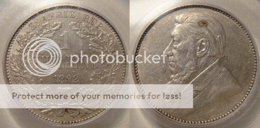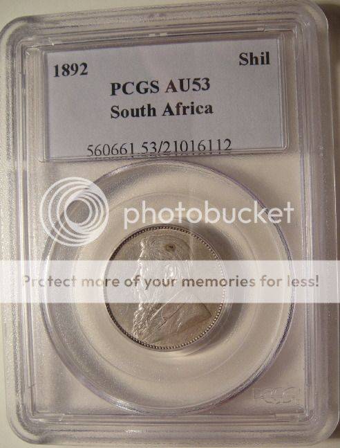 1892 Shilling (1/-) : Paul Kruger ZAR (PCGS Graded AU53)