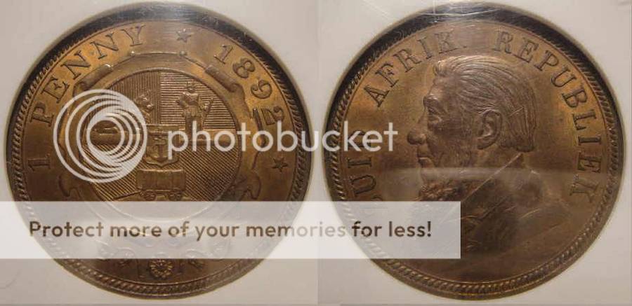 1892 Z.A.R. Paul Kruger Penny : NGC Graded MS 64 RB