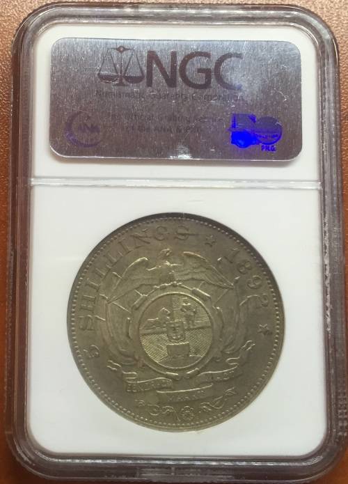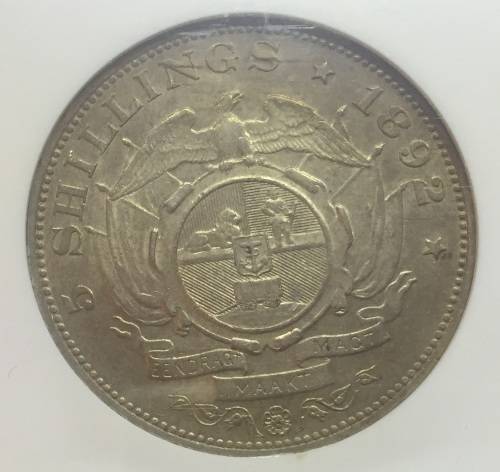 1892 ZAR - SINGLE SHAFT - CROWN - 5 SHILLING AU55 - NGC