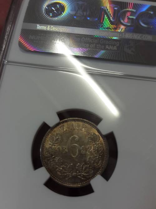 1892 ZAR 6 D MS 62 BY NGC 1892 ZAR 6 D MS 62 BY NGC