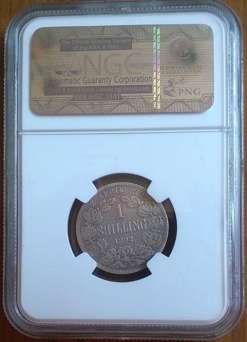 1892 ZAR SILVER 1 SHILLING NGC GRADED F12