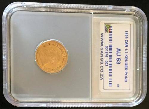 1895 ZAR 1/2 POND -- AU53 - SANGS GRADED RARETY !!!