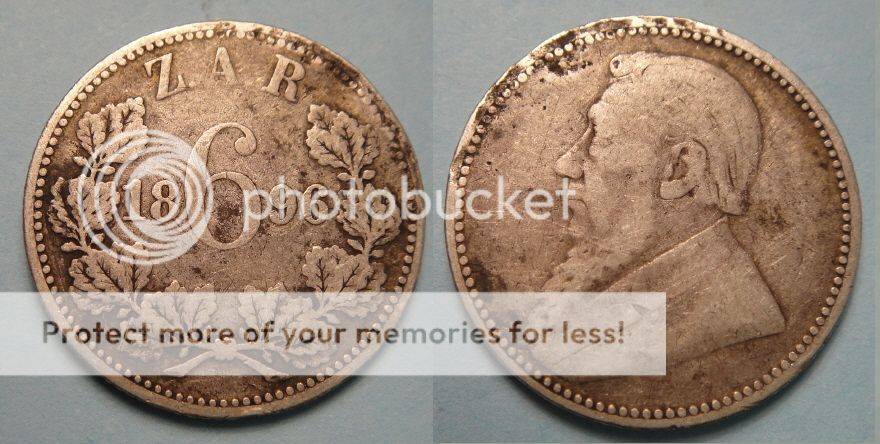 1896 Silver Sixpence (6d) Tickey of Paul Kruger ZAR (rim marks)