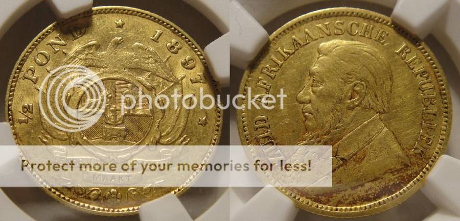 1897 GOLD Half Pond Z.A.R. Paul Kruger : NGC graded XF details