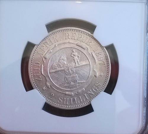 1897 SILVER TWO SHILLINGS NGC GRADED AU50 HERNS VALUE R1750