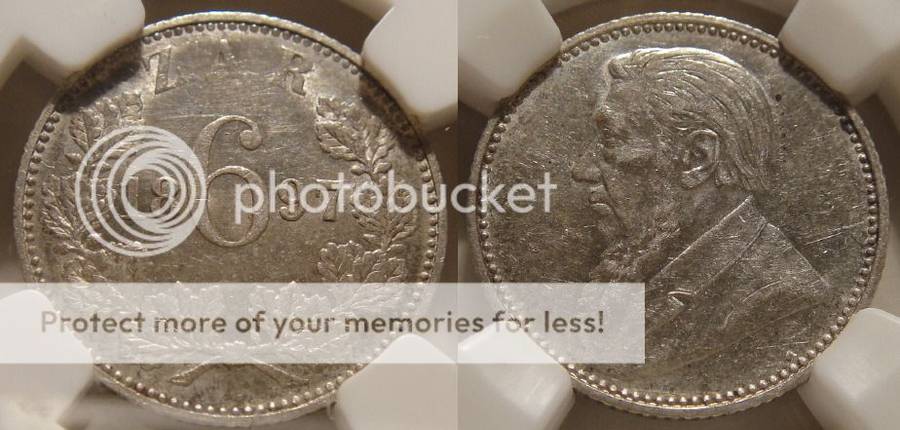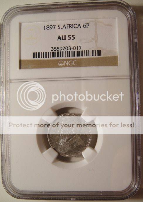 1897 Sixpence (6d) : Paul Kruger ZAR : NGC Graded AU55