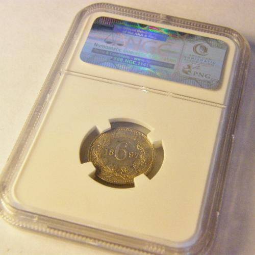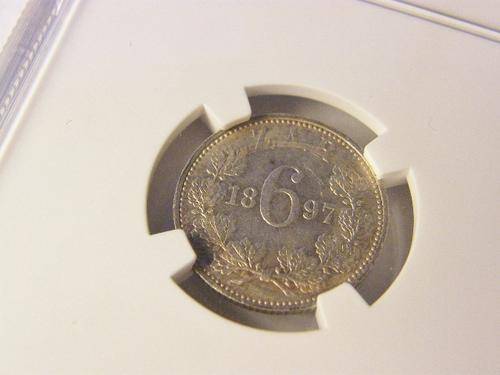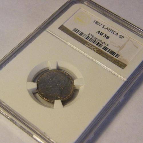 1897 Sixpence graded AU 58 by NGC - as per photo