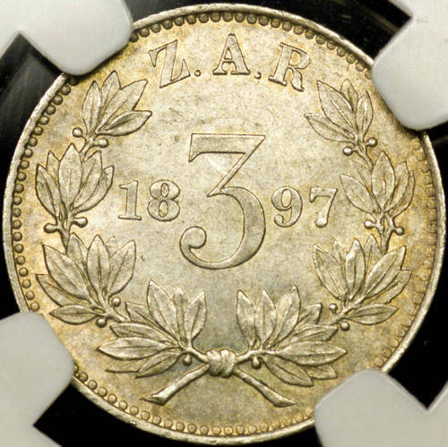 1897 SOUTH AFRICA ZAR 3 PENCE *NGC MS-62 **BEAUTY**